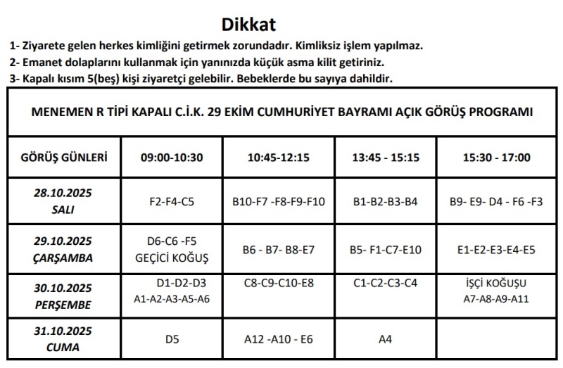 Menemen R Tipi Kapalı Kısım 29 Ekim Cumhuriyet Bayramı Açık Görüş Programı