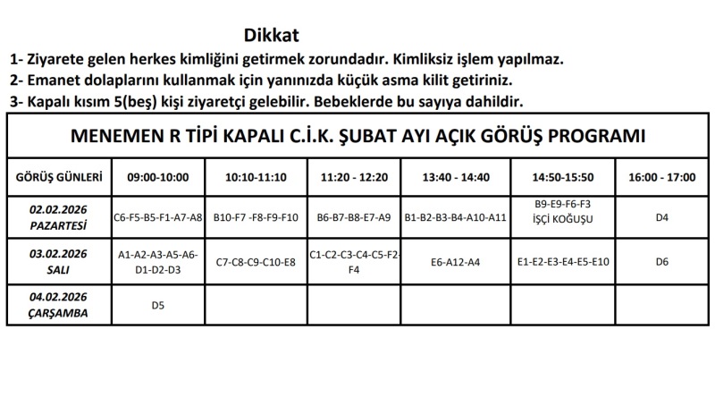 Menemen R Tipi Kapalı Kısım Şubat Ayı Açık Görüş Programı