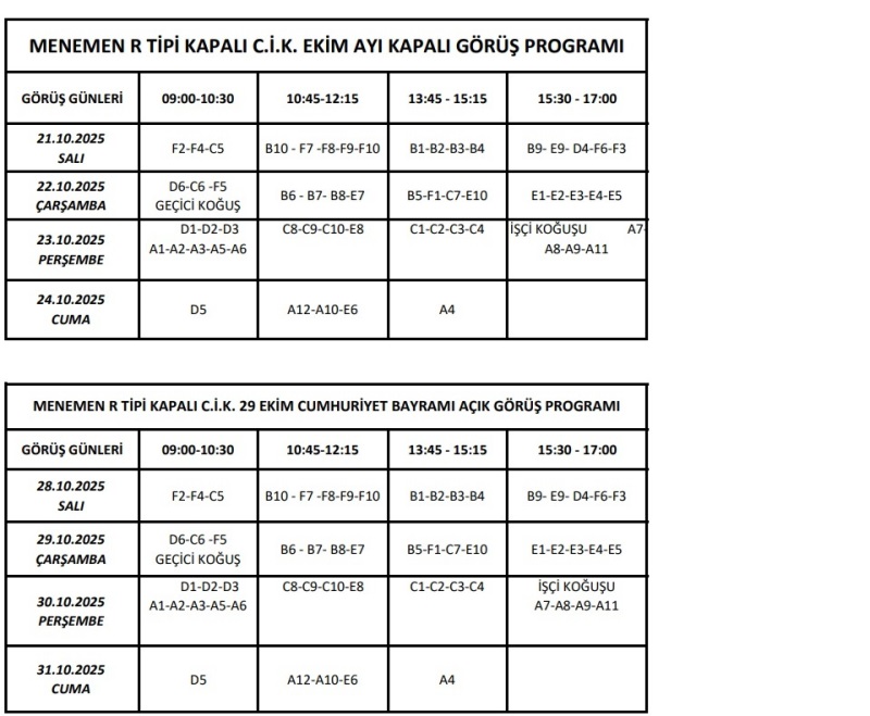 Menemen R Tipi Kapalı Kısım Ekim Ayı Görüş Programı