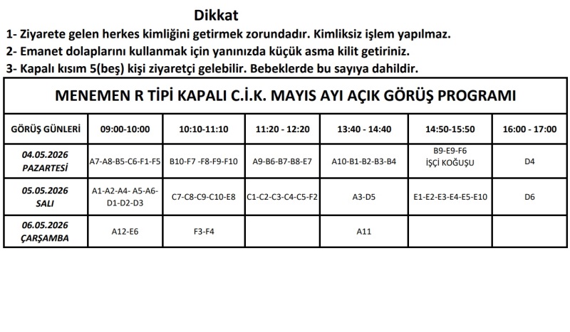 Menemen R Tipi Kapalı Kısım Mayıs Ayı Açık Görüş Programı