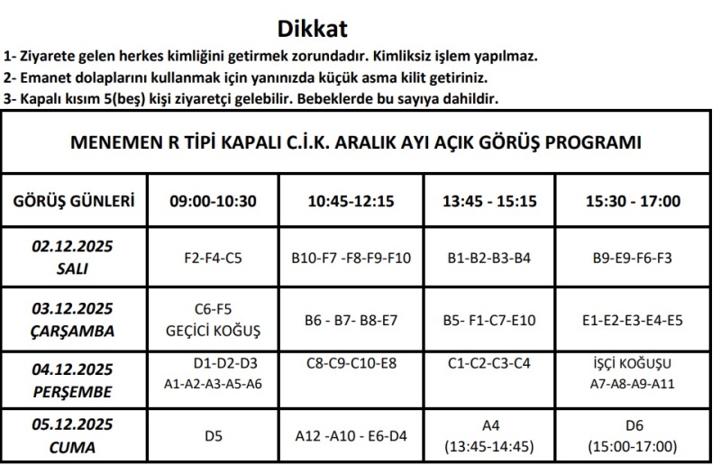 Menemen R Tipi Kapalı Kısım Aralık Ayı Açık Görüş Programı